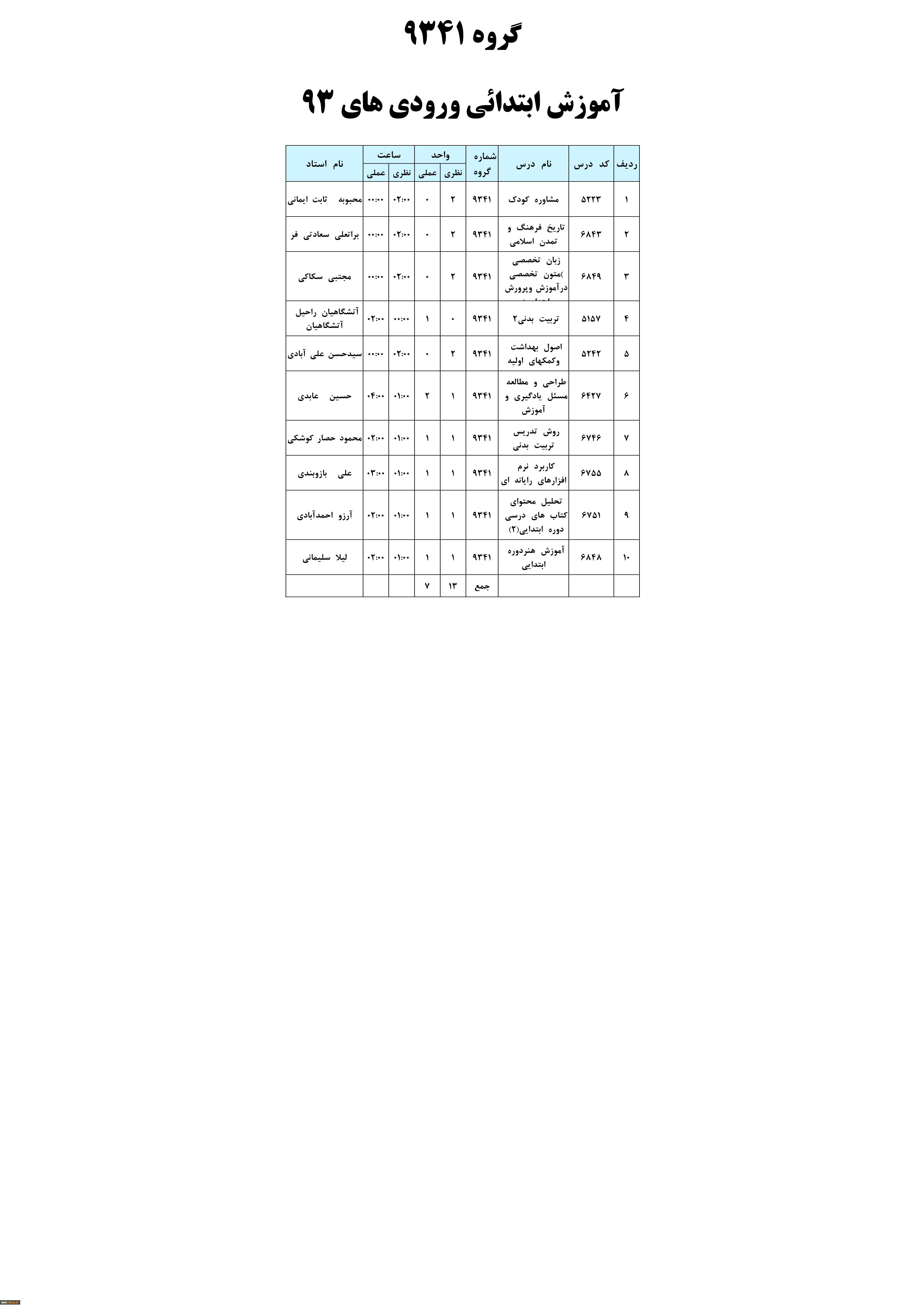معلمان - ورودی 93 آموزش ابتدائی گروه 9341