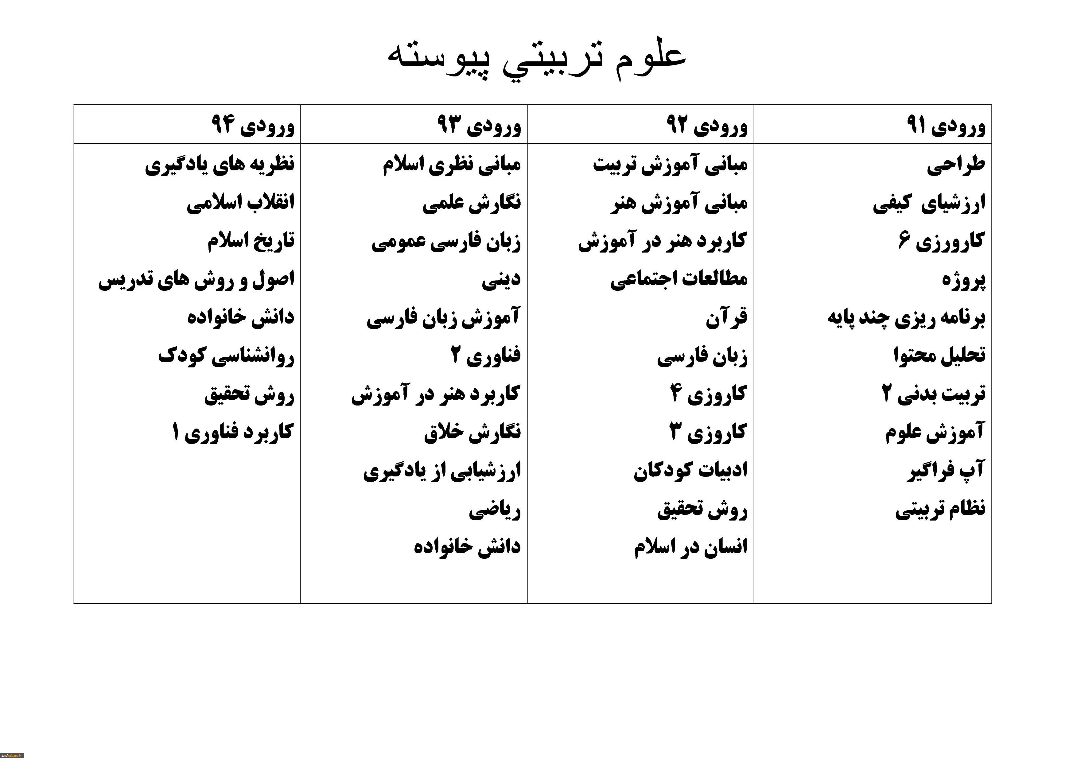 دروس رشته علوم تربیتی کارشناسی پیوسته