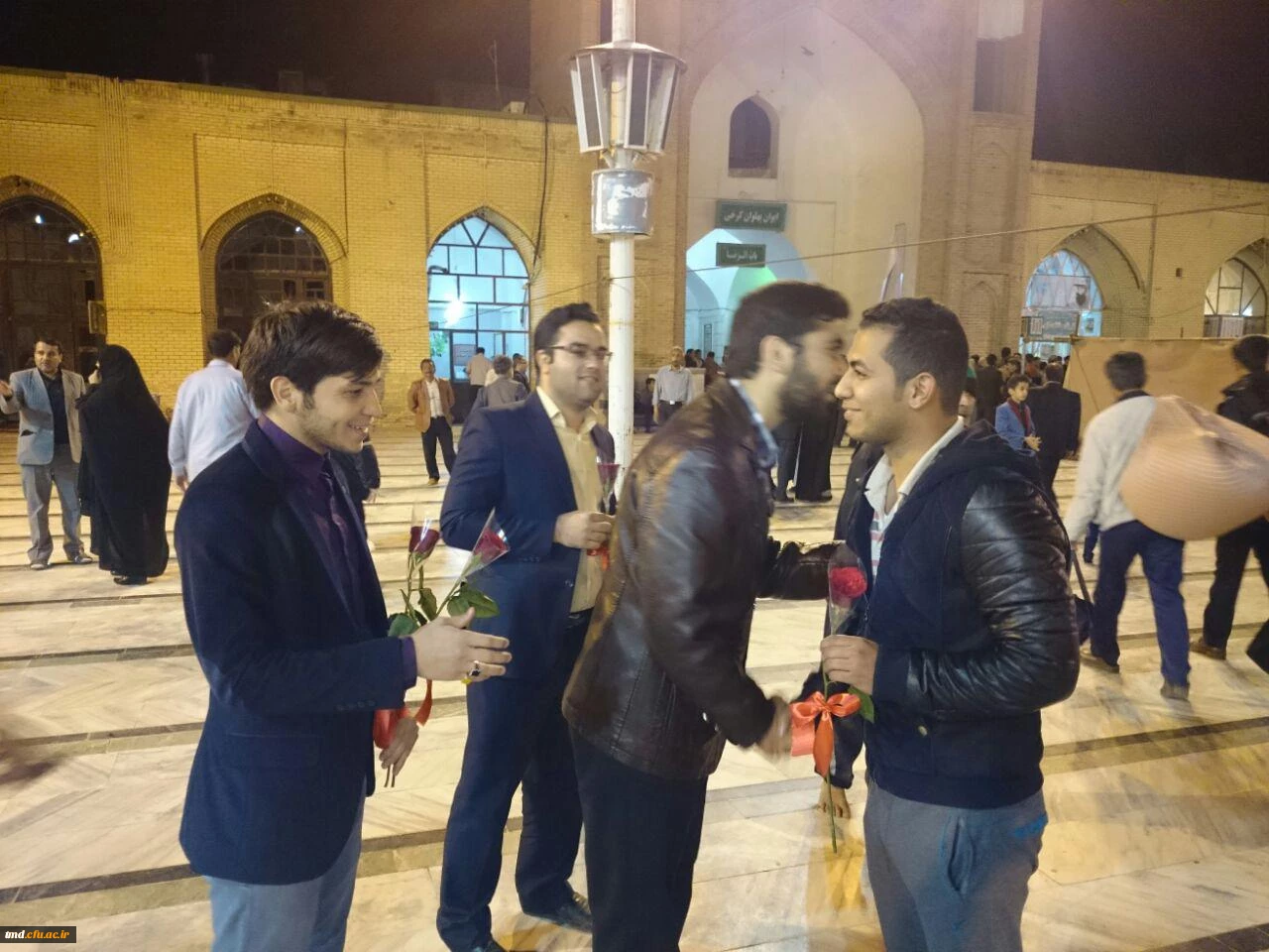 اهدای گل به دانشجویان معتکف در مسجد جامع نیشابور