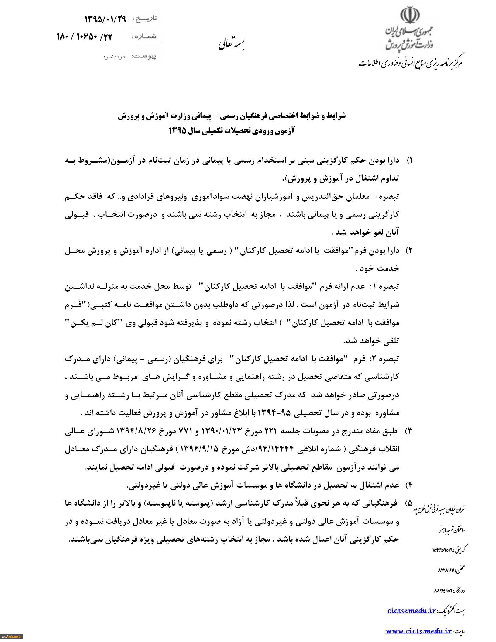 شرایط و ضوابط ادامه تحصیل دانشگاه فرهنگیان