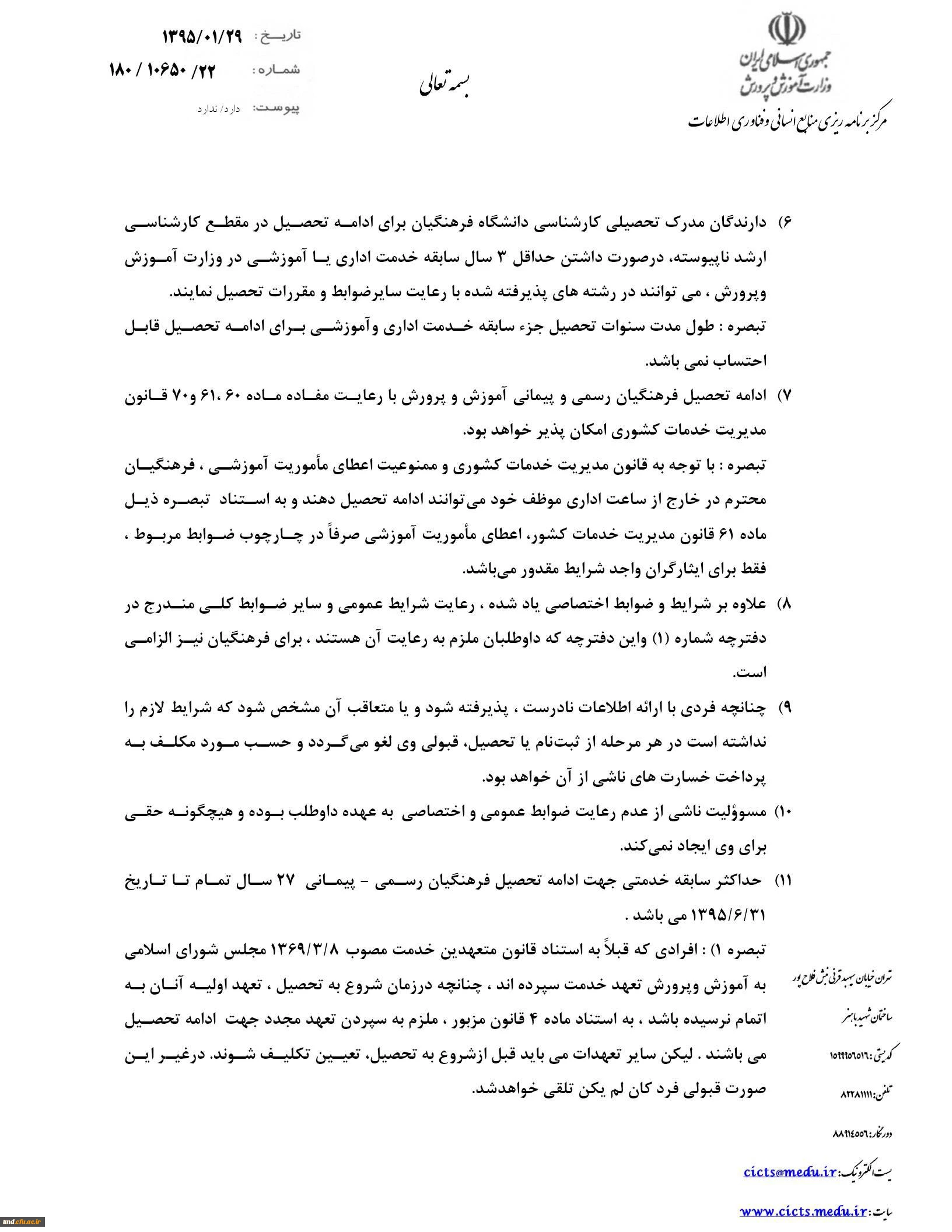 شرایط و ضوابط ادامه تحصیل دانشگاه فرهنگیان