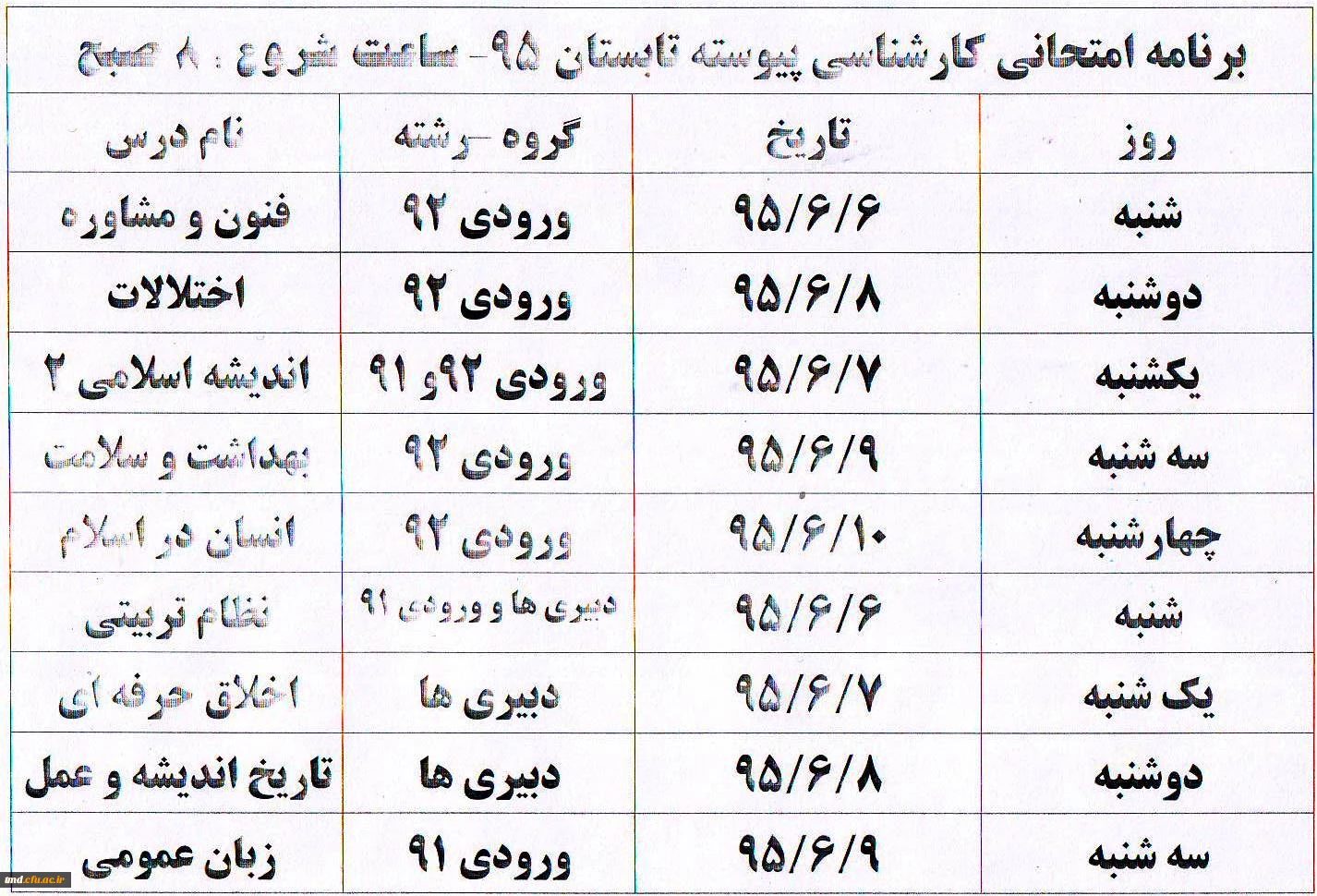 برنامه امتحانی ترم تابستانی دانشجویان پیوسته