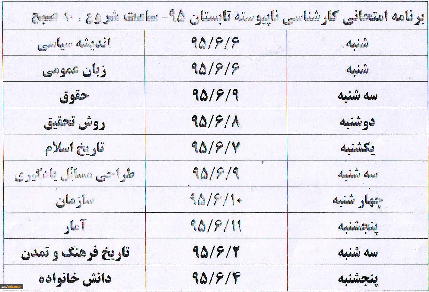 امتیاز دهید : برنامه امتحانی ترم تابستانی دانشجویان کارشناسی ناپیوسته ( معلمان ) دوشنبه 1 شهریور 1395 ساعت 11:36