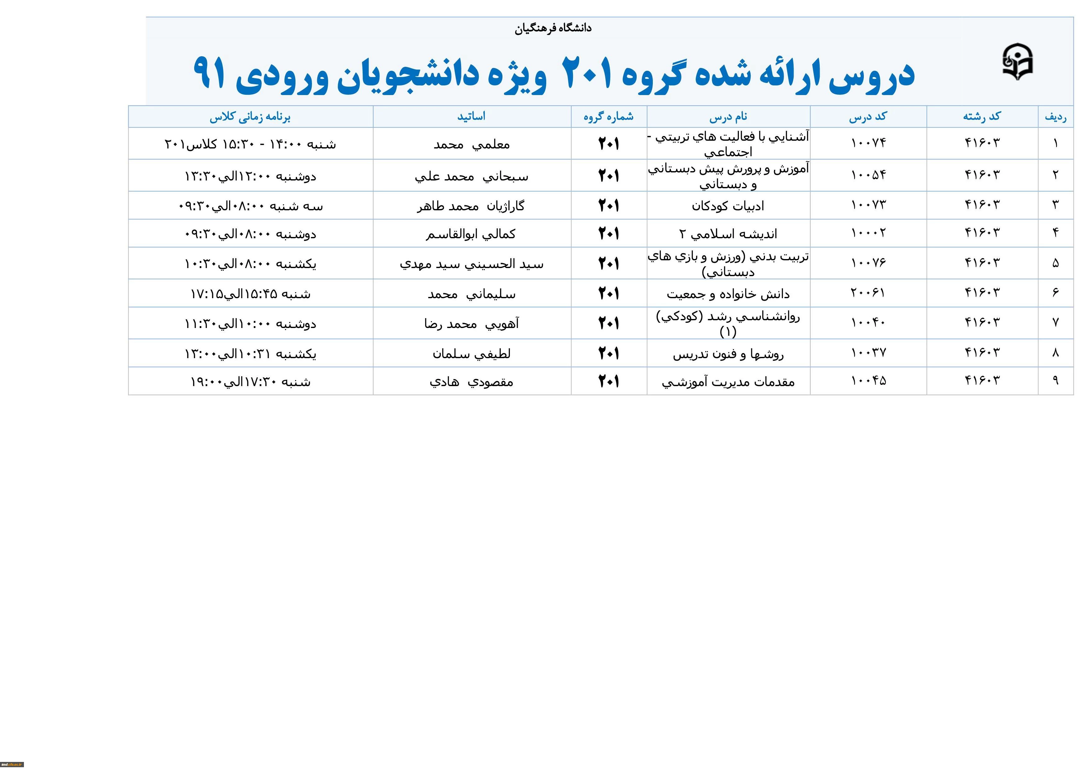 دروس گروه 201