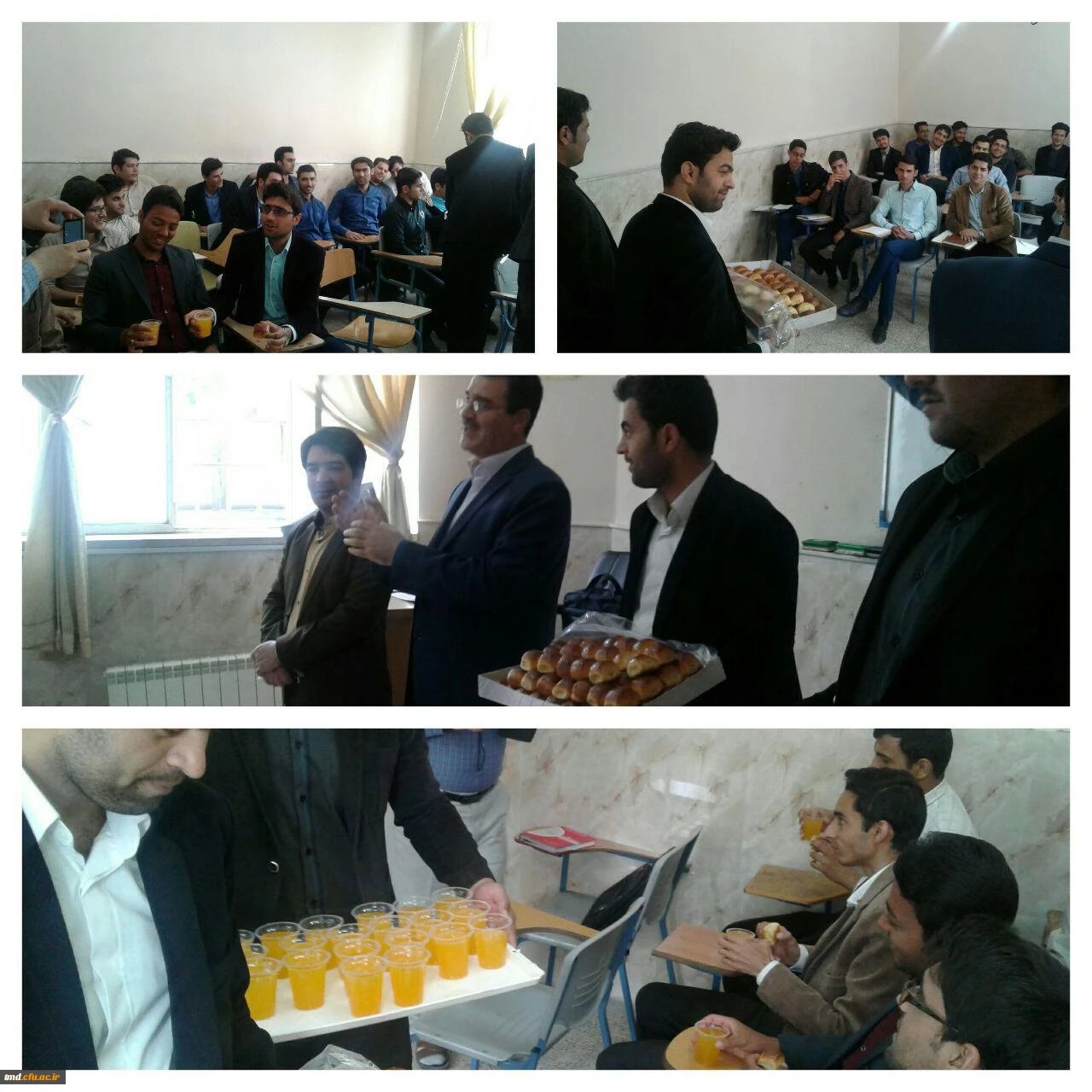 همزمان با 13 رجب و روز میلاد امیر المومنین ( ع) انجام شد : حضور دکتر رئوفیان در کلاسهای درس جهت تبریک و توزیع شربت و شیرینی در بین دانشجویان 3