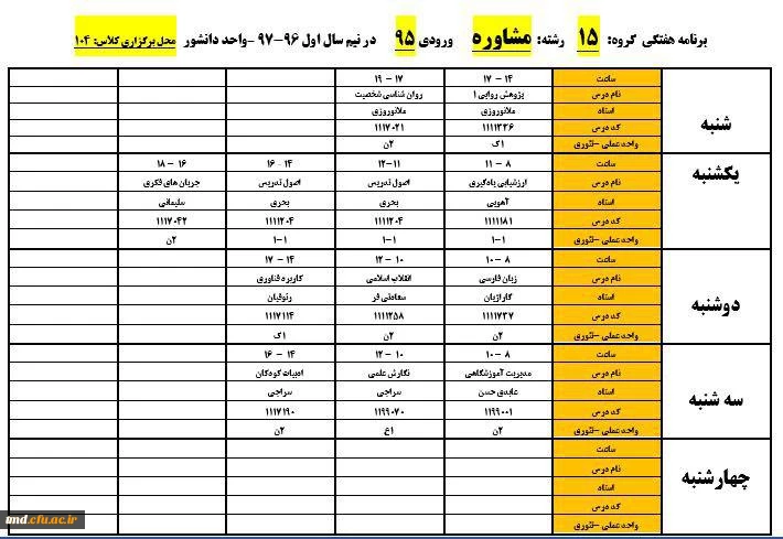 برنامه دروس