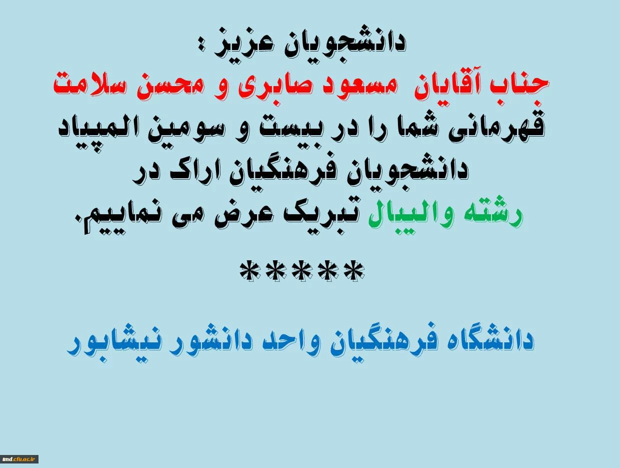 تبریک به دانشجویان مسعود صابری و محسن سلامت