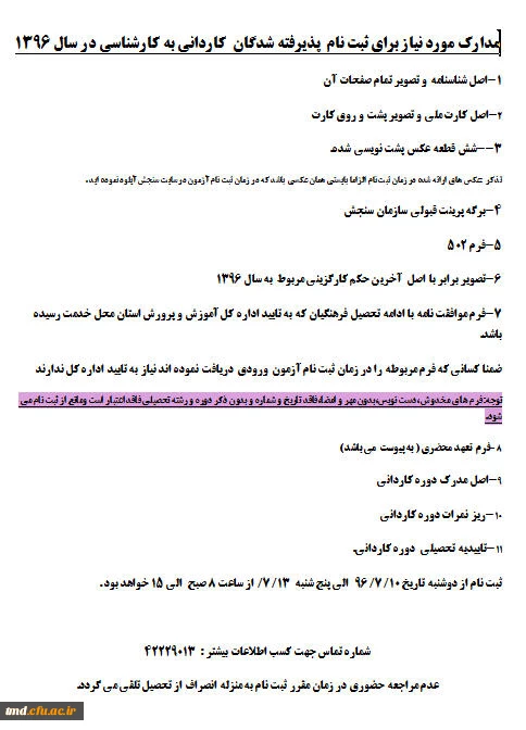 مدارک لازم جهت ثبت نام کاردانی به کارشناسی