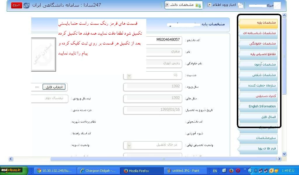 قسمتهای قرمز رنگ سمت راست را تکمیل نمایید.