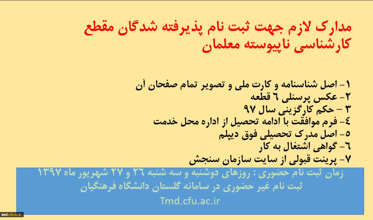 مدارک ثبت نام کارشناسی ناپیوسته معلمان