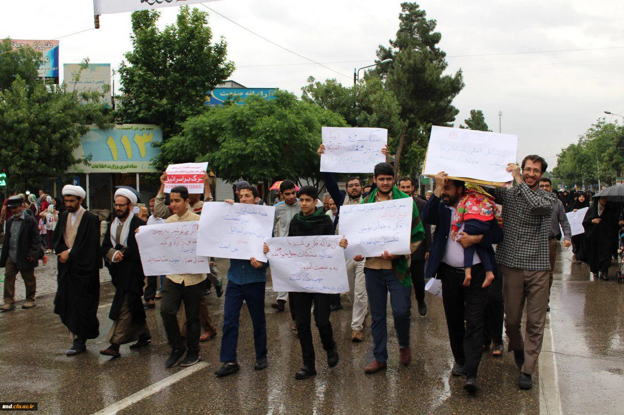 همگام و همراه با امت حزب الله و در پاسخ به ندای رهبر معظم انقلاب صورت گرفت: حضور اساتید ، کارکنان و دانشجویان واحد دانشور در راهپیمایی روز جهاانی قدس 2