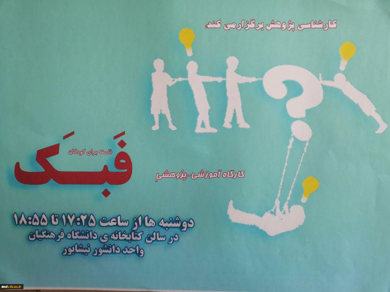 امتیاز دهید : کارشناسی پژوهش واحد دانشور برگزار می کند . کارگاه فلسفه برای کودکان ( فبک ) 2 یکشنبه 10 آذر 1398 ساعت 14:14