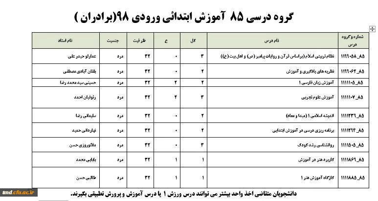 برنامه دروس ارائه شده و زمان دروس ویژه ترم دوم و راهنمای انتخاب واحد ( برادران و خواهران ) 12