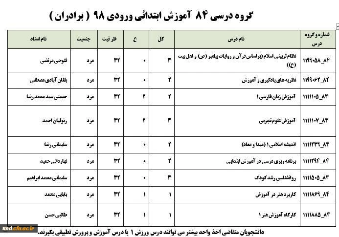 برنامه دروس ارائه شده و زمان دروس ویژه ترم دوم و راهنمای انتخاب واحد ( برادران و خواهران ) 13