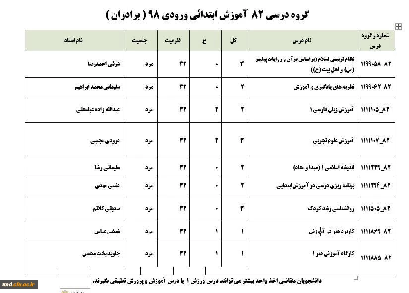 برنامه دروس ارائه شده و زمان دروس ویژه ترم دوم و راهنمای انتخاب واحد ( برادران و خواهران ) 18