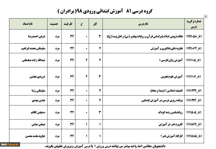 برنامه دروس ارائه شده و زمان دروس ویژه ترم دوم و راهنمای انتخاب واحد ( برادران و خواهران ) 19