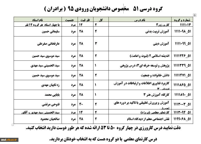 برنامه دروس ارائه شده و زمان دروس ویژه ترم دوم و راهنمای انتخاب واحد ( برادران و خواهران ) 21