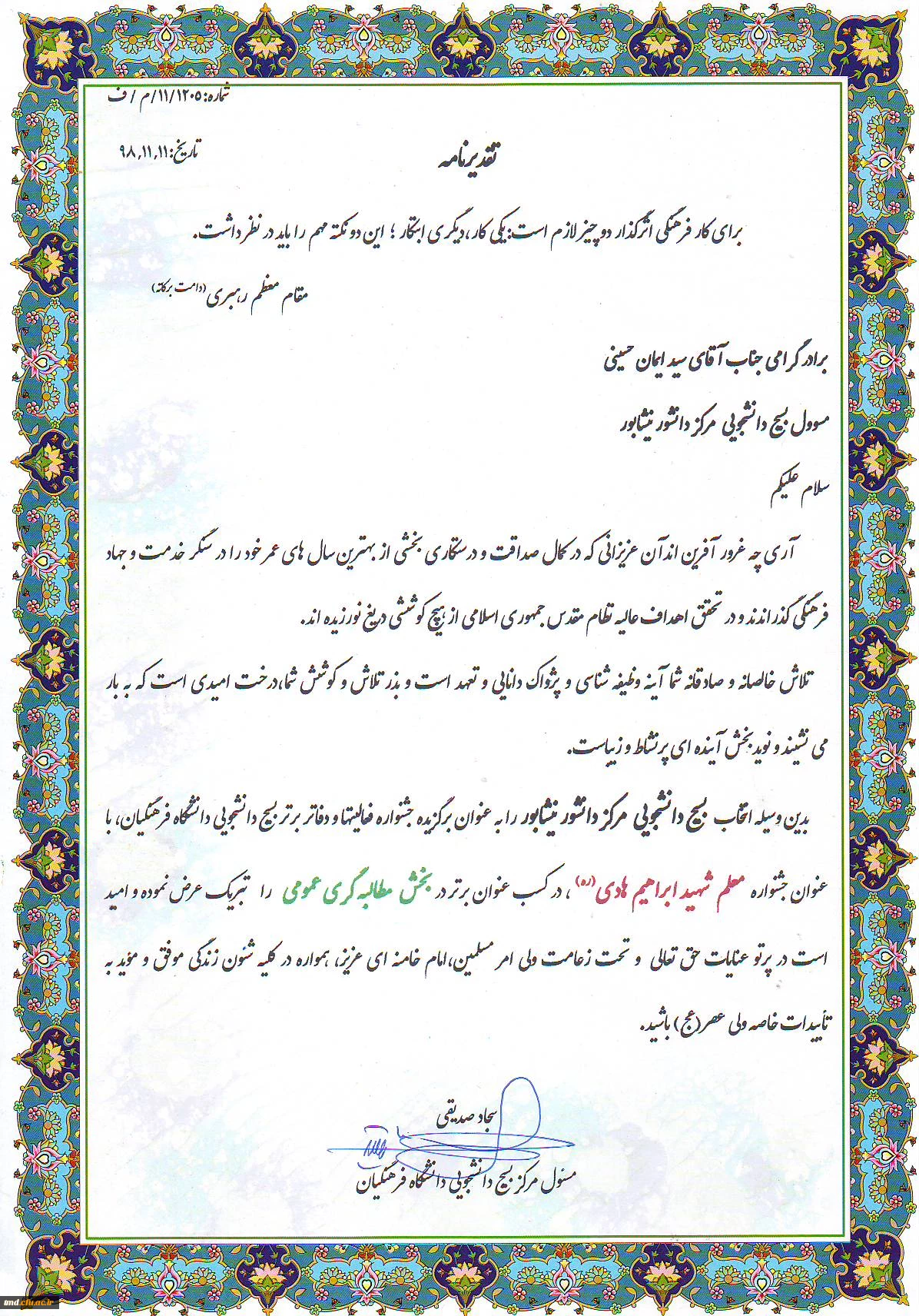 امتیاز دهید : کسب مقام برتر در بسیج واحد های بسیج دانشجویی دانشگاه فرهنگیان شنبه 12 بهمن 1398 ساعت 12:56