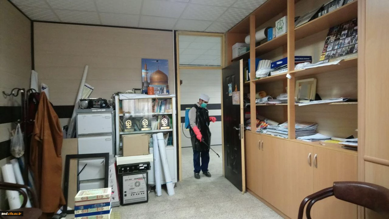 در راستای پیشگیری و مقابله با ویروس کرونا انجام شد : ضد عفونی و نظافت عمومی فضای سراهای دانشجویی ، کلاسها ، آشپزخانه و سالن های واحد دانشور 14