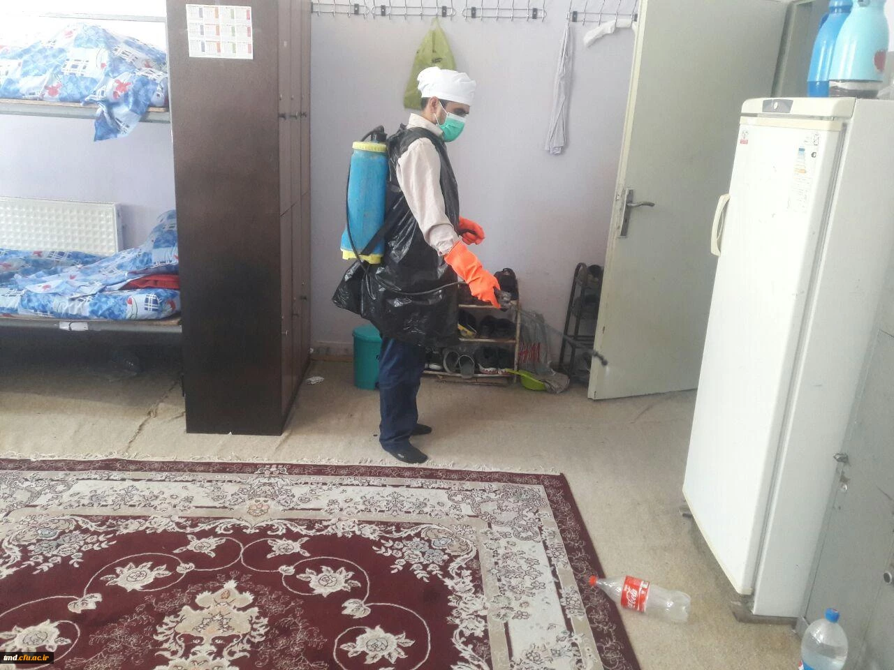 در راستای پیشگیری و مقابله با ویروس کرونا انجام شد : ضد عفونی و نظافت عمومی فضای سراهای دانشجویی ، کلاسها ، آشپزخانه و سالن های واحد دانشور 16