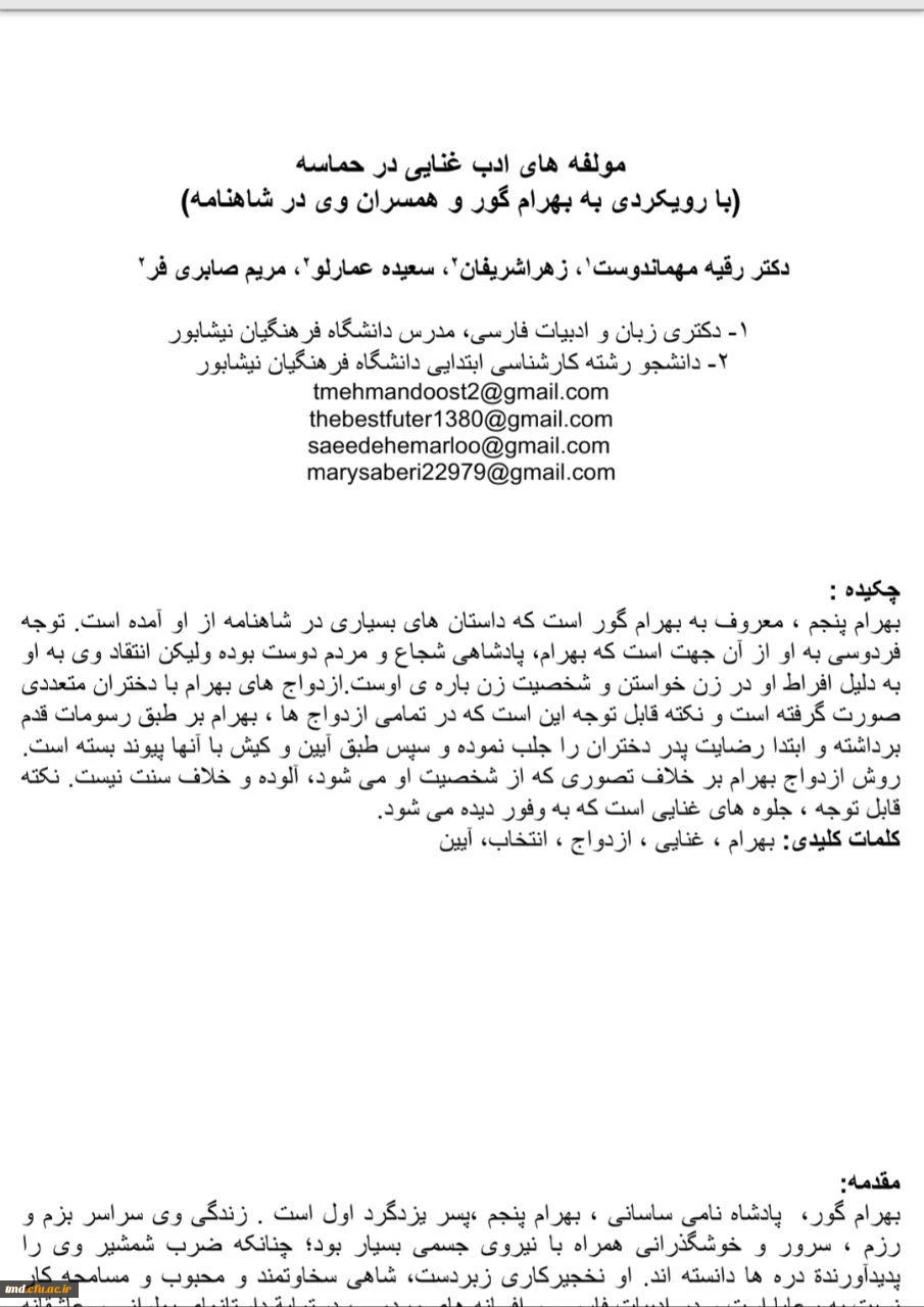 پذیرش مقالات پژوهشی و چاپ کتاب به راهنمایی سرکار خانم دکتر مهماندوست و همکاری دانشجویان پژوهشگر سرکار خانم ها : زهرا شریفان ، سعیده عمارلو ، مریم صابری فر 5