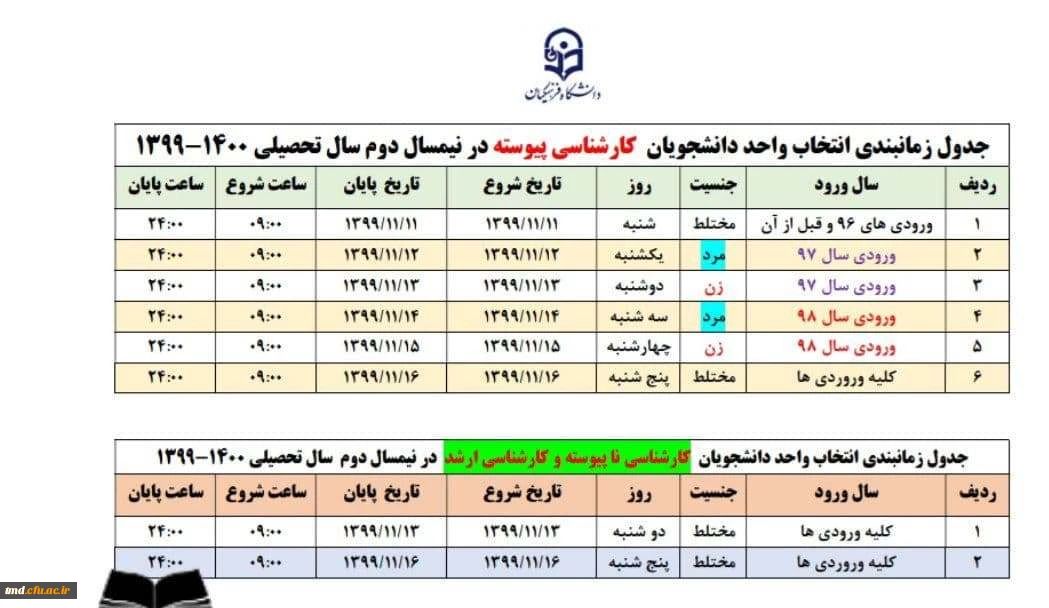 برنامه زمانی انتخاب واحد دانشجویان در نیمسال دوم