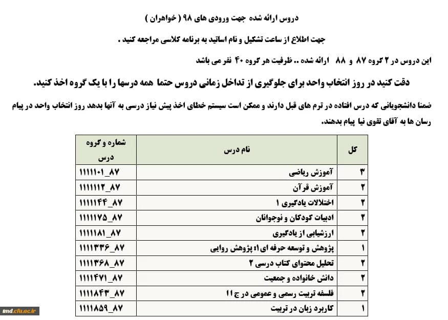 قابل توجه دانشجویان عزیز برنامه زمانی و نحوه انتخاب واحد ( ثبت نام ) دانشجویان در نیمسال دوم 400-1399 4
