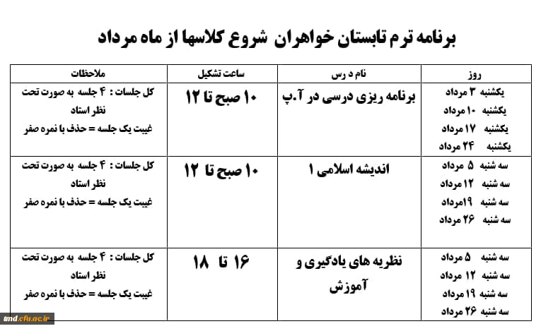 اطلاعیه مهم برگزاری کلاسهای ترم تابستان ( مهارت آموزان و دانشجویان پیوسته ورودی بهمن 97)