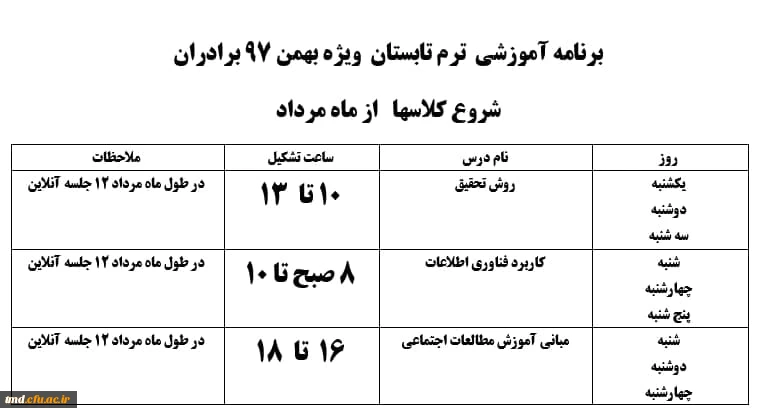 اطلاعیه مهم برگزاری کلاسهای ترم تابستان ( مهارت آموزان و دانشجویان پیوسته ورودی بهمن 97)