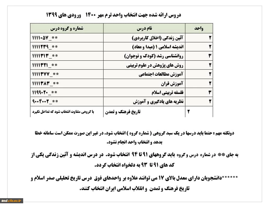 امتیاز دهید : اطلاعیه مهم انتخاب واحد نیمسال اول 401--1400 قابل توجه کلیه دانشجویان محترم 17 چهارشنبه 17 شهریور 1400 ساعت 14:05