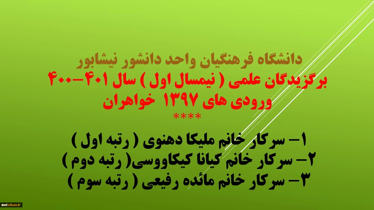 امتیاز دهید : برگزیدگان علمی نیمسال اول دانشگاه فرهنگیان واحد دانشور نیشابور 6 شنبه 17 اردیبهشت 1401 ساعت 16:06