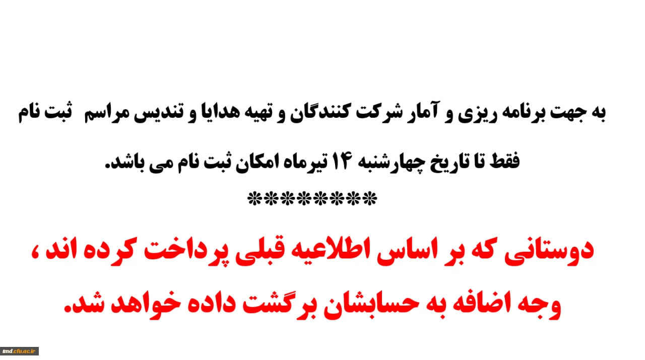 امتیاز دهید : قابل توجه دانشجویان ورودی 98 ( برادران و خواهران ) ثبت نام در جشن آئین دانش آموختگی 4 شنبه 10 تیر 1402 ساعت 8:24