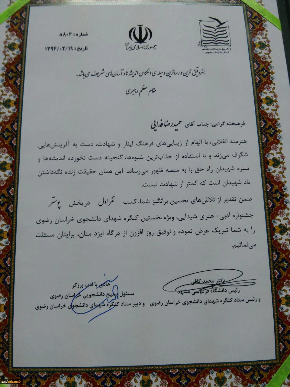 کسب مقام اول در بخش طراحی پوستر