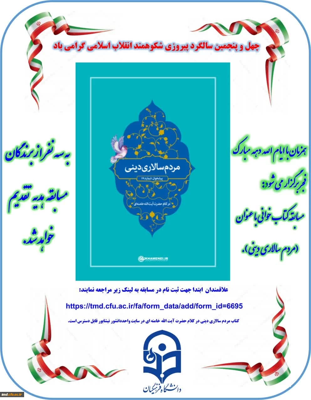 همزمان با ایام الله دهه مبارک فجر برگزار می شود : مسابقه کتابخوانی با عنوان (( مردم سالاری دینی )) 2