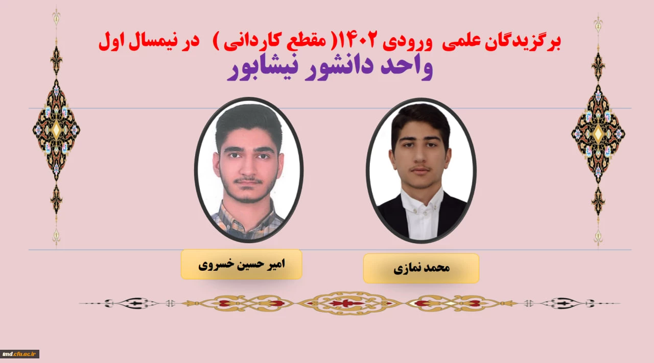 امتیاز دهید : نفرات برگزیده علمی در نیمسال اول 403-402 واحد دانشور نیشابور 6 یکشنبه 16 اردیبهشت 1403 ساعت 16:32