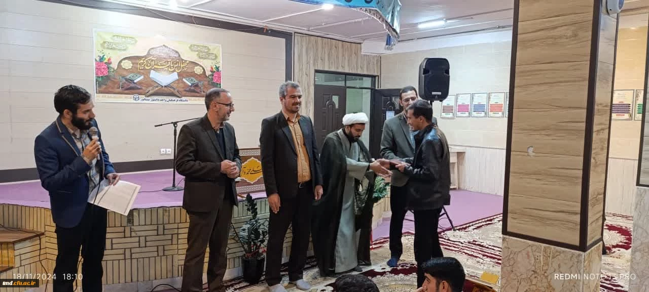 در پی اهدای قرآن از سوی دفتر مقام معظم رهبری به دانشجویان انجام شد : برپایی محفل بزرگ قرآنی و تجلیل از اساتید و قاریان و حافظان برتر دانشجویی در حوزه قرآن 3
