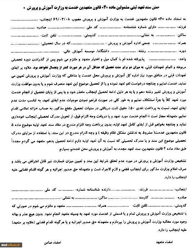 فرم تعهد محضری