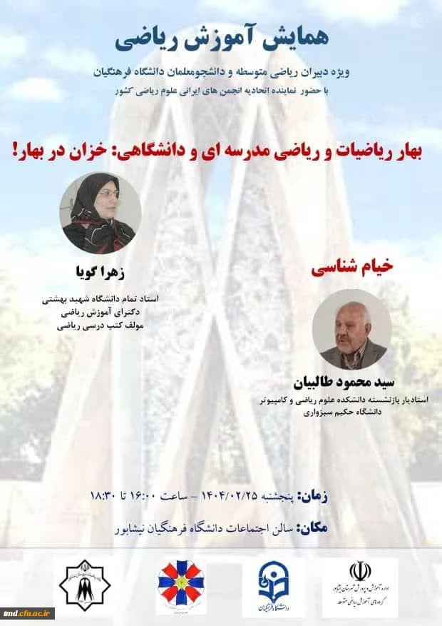 امتیاز دهید : همزمان با روز جهانی خیام و هفته بهار ریاضیات انجام شد : همایش آموزش ریاضی 4 شنبه 27 اردیبهشت 1404 ساعت 7:36